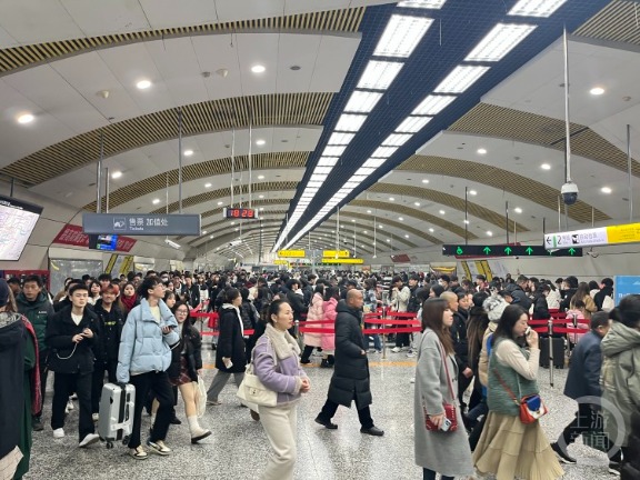 纪录为何频频刷新?跨年夜,车站人潮涌动,2024年1月1日00:57,重庆交通开投轨道集团将原计划延时运营至1月1日1点的运营时间再次延长,加大运力投入,加强人员值守,优化行车组织,缩短发车间隔,全力护送乘客安全、畅通出行。